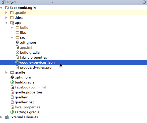 - Switch back to Android Studio and make sure you have the ‘Project’ view selected. Drag the newly-downloaded google-services.json file into your project’s ‘app’ directory.