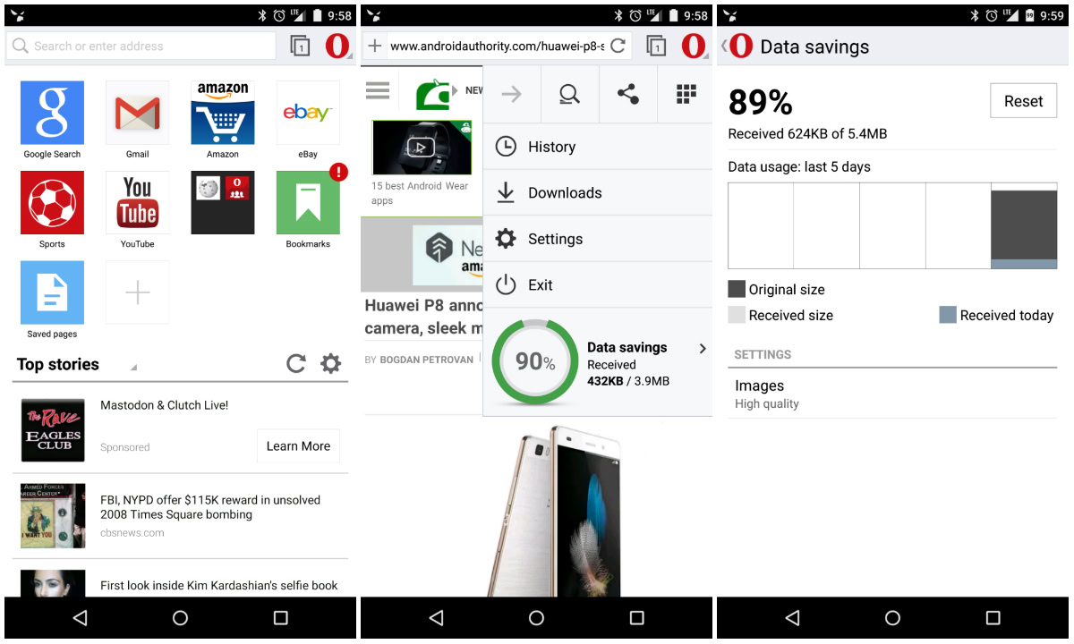 Opera Mini has always been pretty good about saving you as much data as possible, and now the Opera team has brought that data out in the open. Now when you click on the big “O” in the corner, you’ll see a data gauge that will let you know how much data you’ve saved overall. There’s also a new private browsing mode, similar to Google’s Incognito Mode, and gesture support to initiate web searches much more easily.