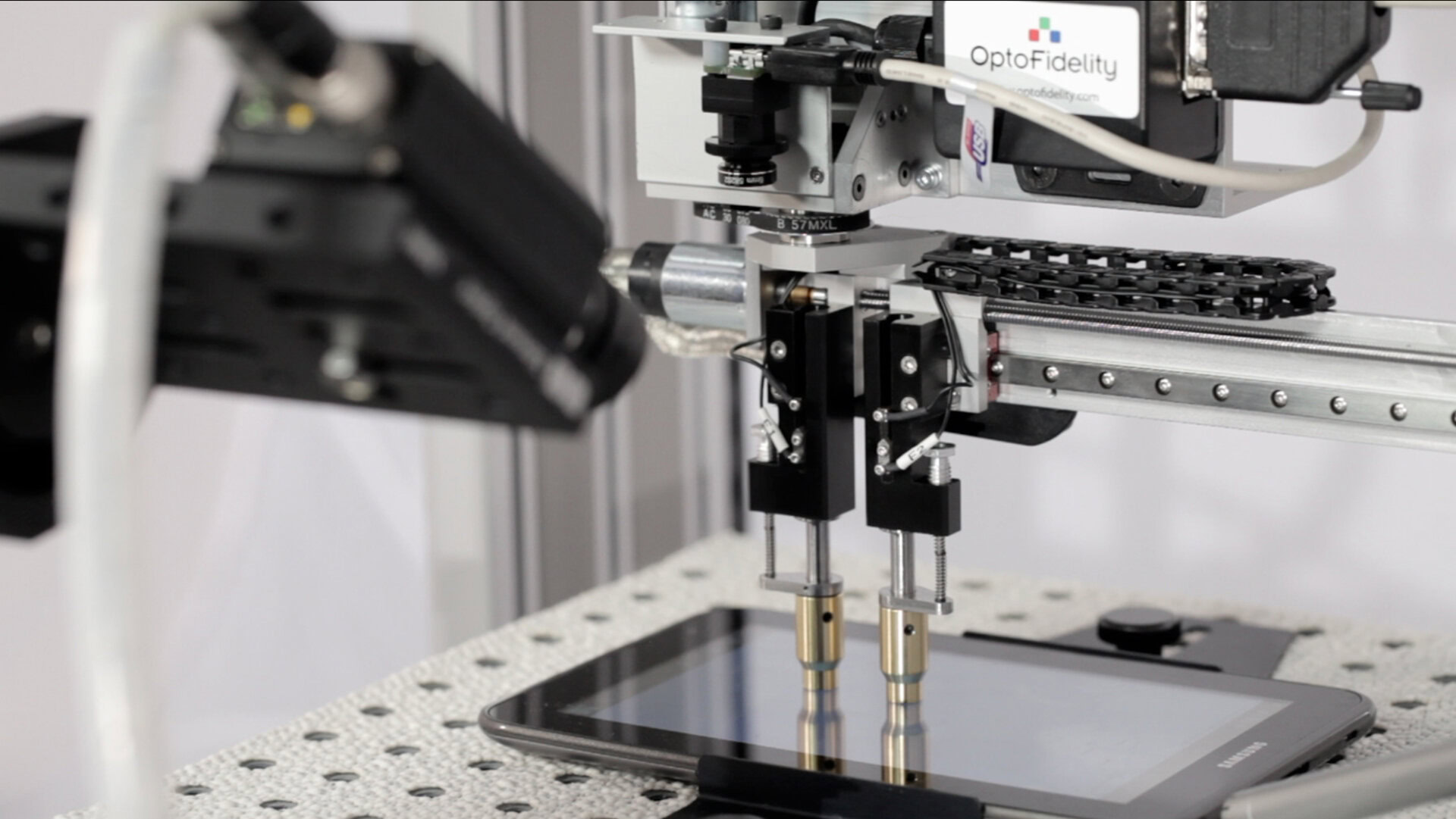 The robot is manufactured by Finnish company OptoFidelity, which has been delivering interaction testing robots to the world’s top electronics manufacturers since 2005. In fact, there’s a good chance the smartphone you’re using right now has experienced the cold mechanical touch of an OptoFidelity robot. According to the company’s CEO, eight out of the top ten phone makers have bought OptoFidelity equipment over the past couple of years.