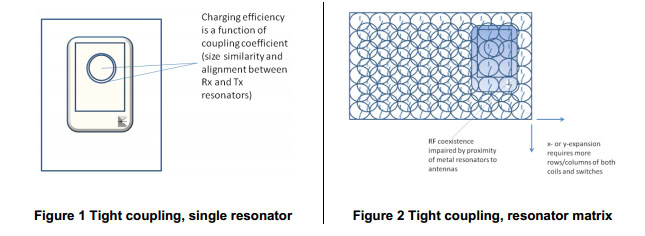 In order to address the problem of only being able to charge over a small area, Qi compliant components can, and do, use multiple tightly couple resonator arrays in order to create a larger charging area. However it obviously consumes a lot more power to have the entire matrix of individual coils switched on, and this still doesn’t solve the problem whereby users have to line-up their devices precisely with the small magnetic fields in order to achieve a strong enough connection.