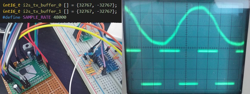If any more proof were needed, I’ll also show an output from a high quality DAC using the Circus Logic CS4272 (pictured at the top). The CS4272 features an interpolation section and steep built in output filter. All we are doing for this test is using a micro-controller to feed the DAC two 16-bit high and low samples at 48kHz, giving us the maximum possible output waveform at 24kHz. There are no other filtering components used, this output comes straight from the DAC.