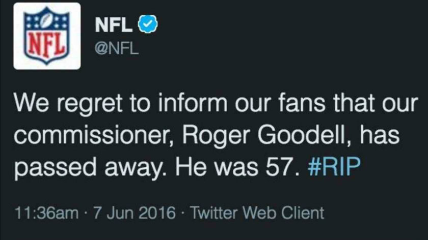The NFL wasn’t even given a sporting chance when it lots control of its Twitter account and mischievously informed the world that Commissioner Roger Goodell was dead. The offending tweet was removed mere minutes later, but not before some news networks ran the story. In this case, hackers got access to an employee’s emails that contained the League’s Twitter password.