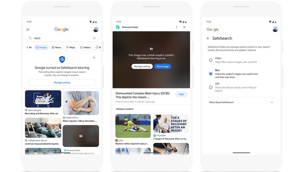 - SafeSearch blurring: This month, everyone worldwide will have access to a new SafeSearch tool that automatically blurs explicit and graphic imagery from Search. This will be useful for parents, schools, and private organizations to keep explicit imagery away from users. This will start to happen by default, but you can easily turn it off (unless, of course, your parents are the ones who turned it on).