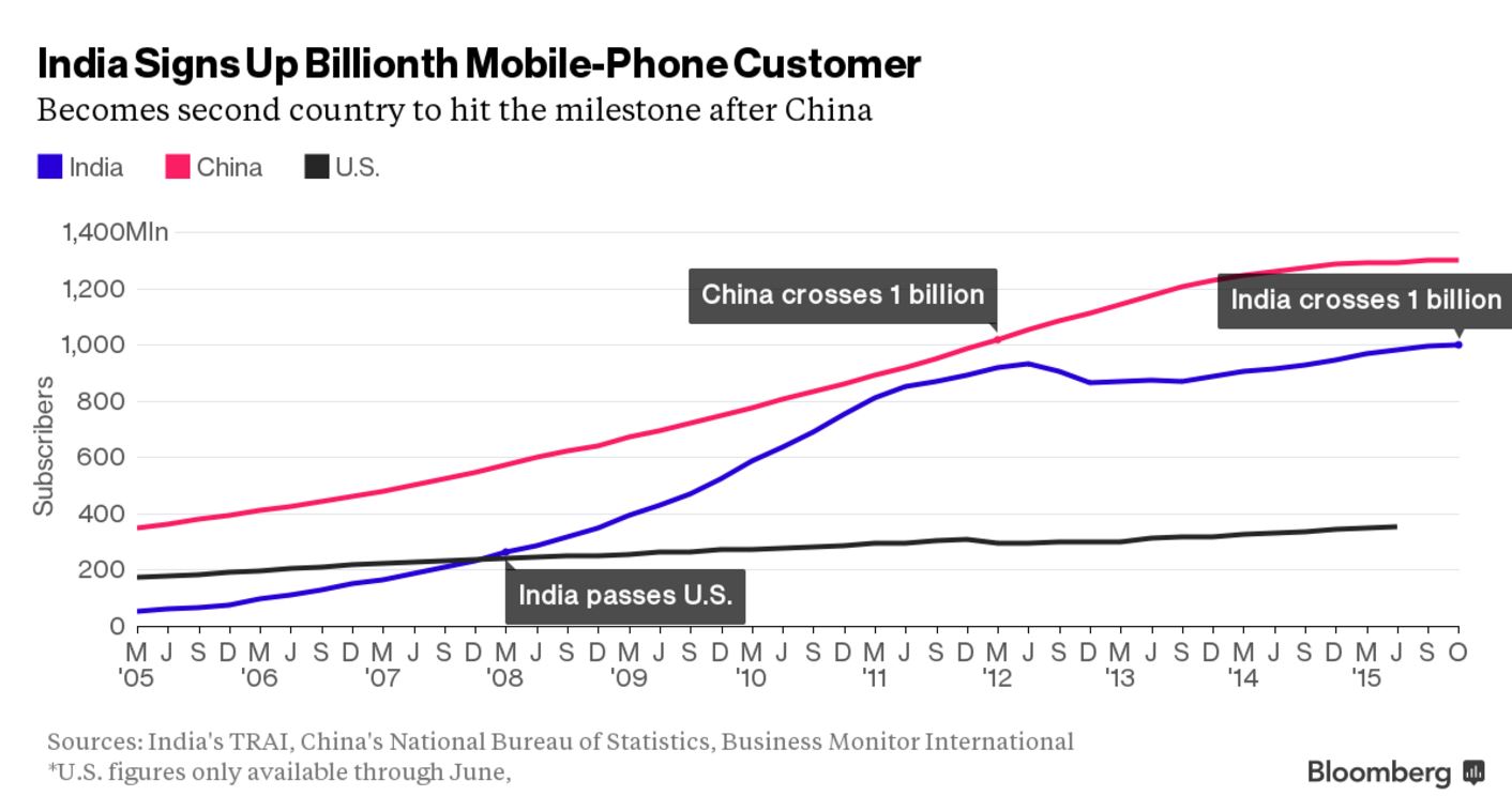 India hits 1 billion mobile phone users
