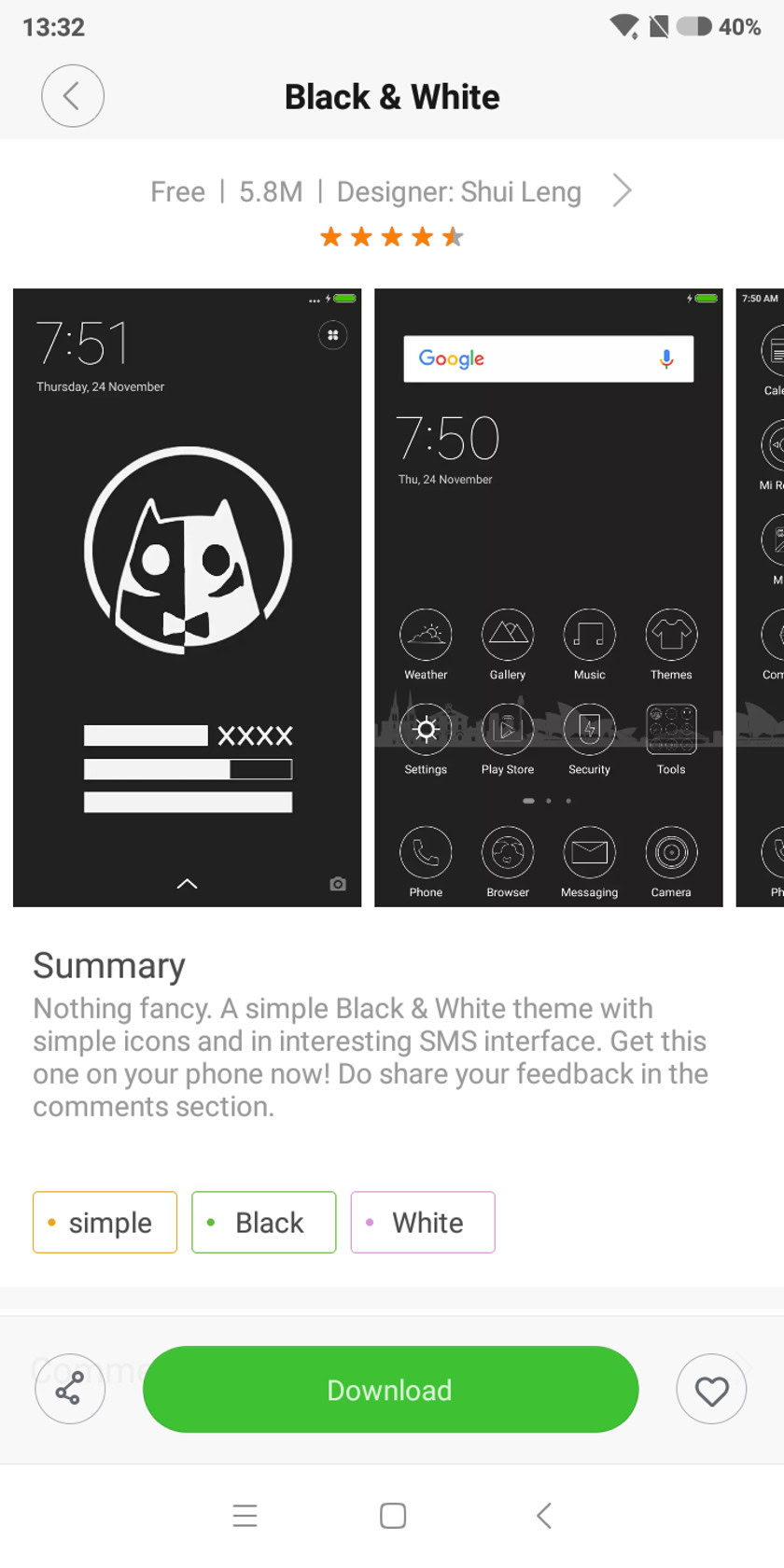 Spotted a theme you like? Tap on it and you’ll see a green download button docked at the bottom of the screen. Tap the button and then simply wait for the download bar to fill.