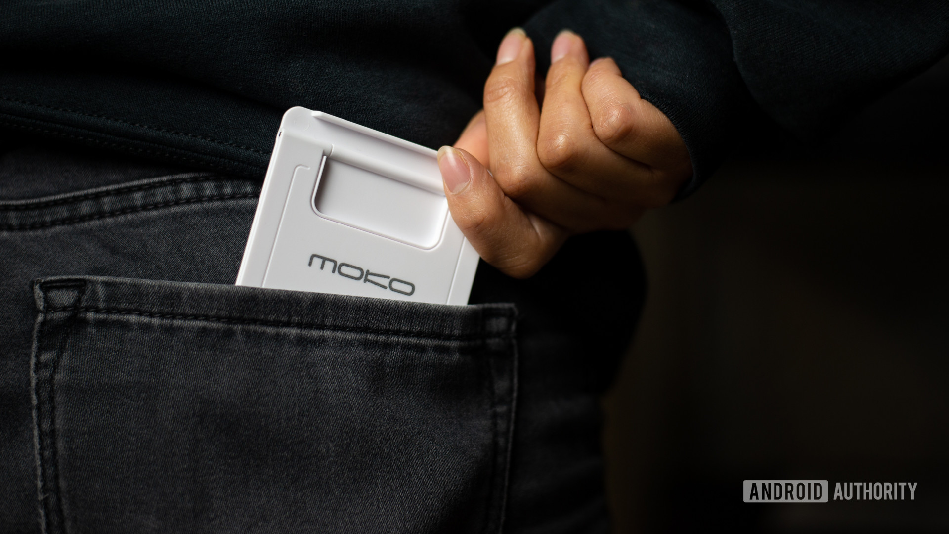 Since build quality isn’t exactly the Moko stand’s strength, there are other elements that make it exciting. This accessory is extremely light at just 1.09oz. It can also be folded and measures just 3.26 x 2.8 x 0.5 inches in its closed position. You can literally pocket this thing and carry it around.