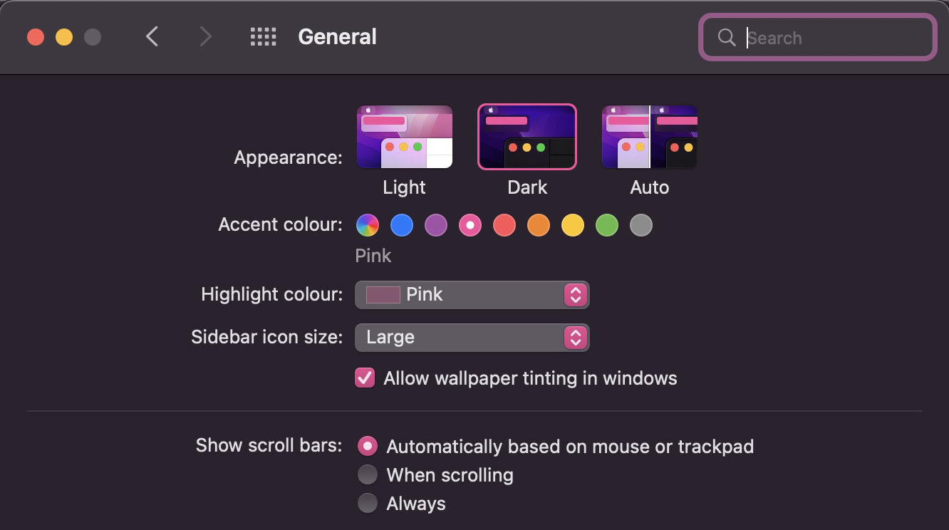 In the General section, the first option deals with Appearance. Select Dark and everything on your Mac to do with the macOS system (windows, menus, etc) will immediately go black. If you select Auto, it will only go dark when it senses that it is dark in your timezone.