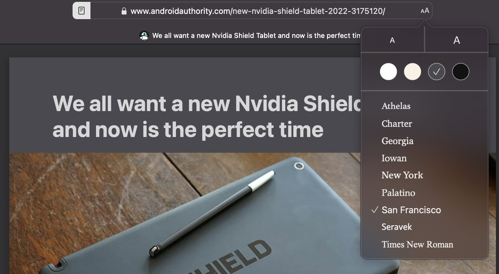 If you don’t use the Dark Mode for Safari browser extension, or Safari Reader, you would need to find out if a website supports dark mode, and if so, switch it on. Android Authority, for example, supports it.