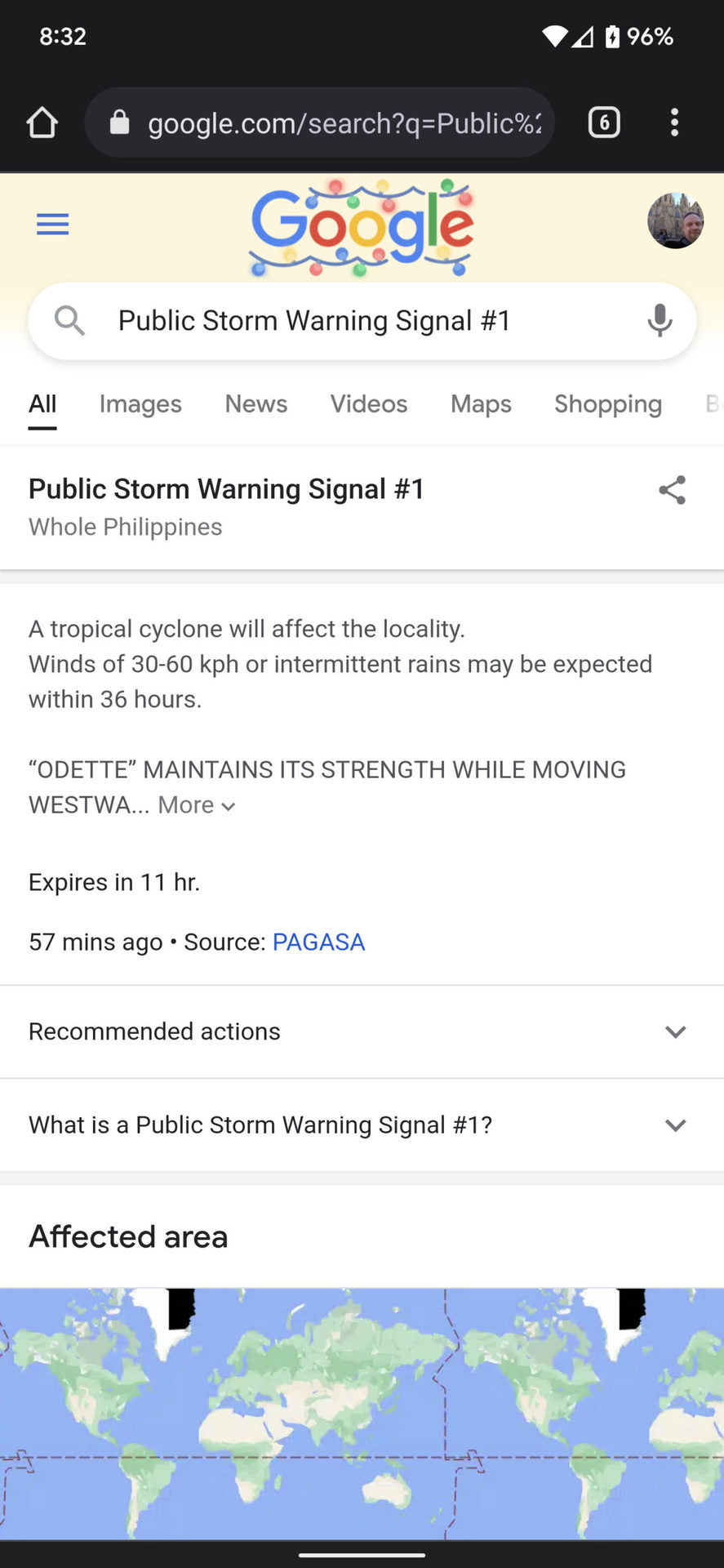 - A Pixel alert went out today warning users of a storm in the Philippines.