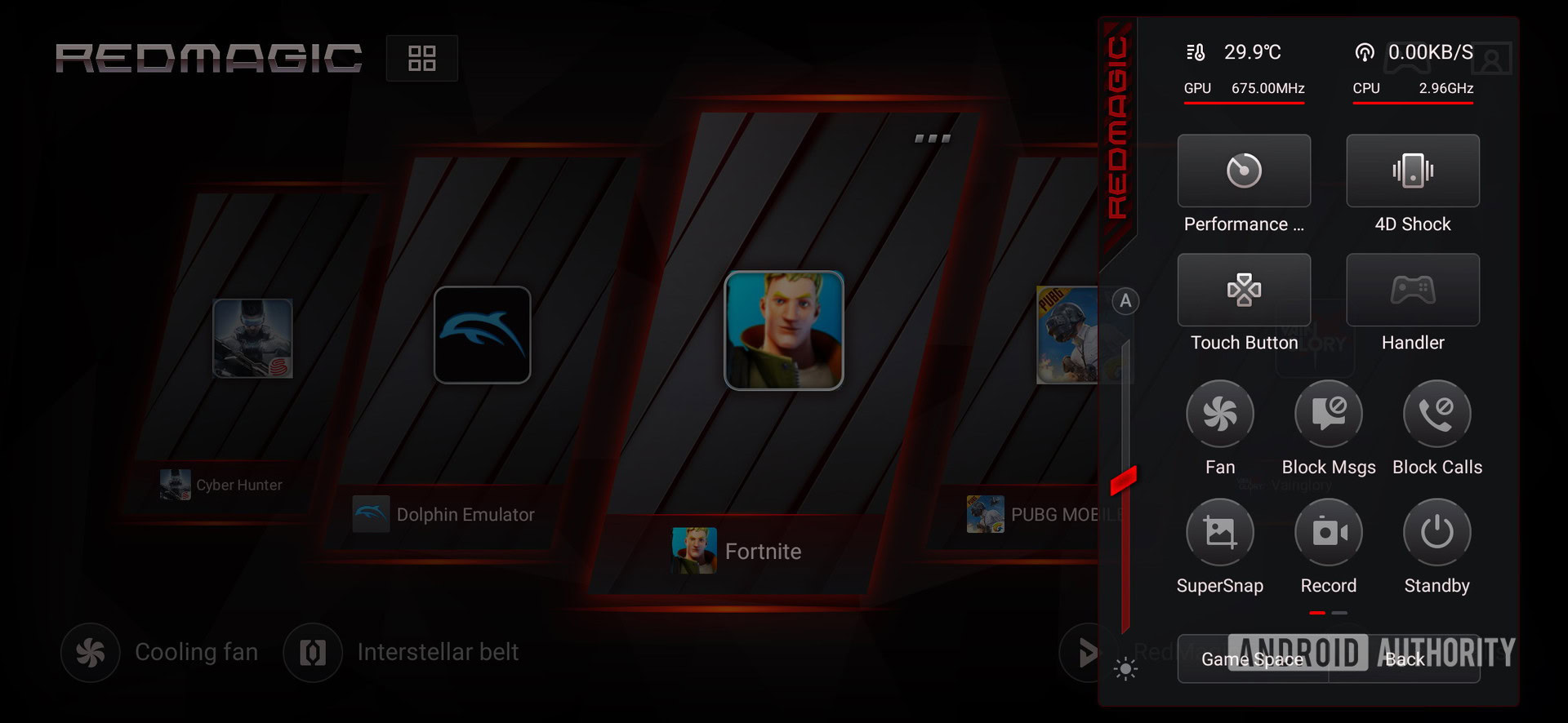 Flicking the small red side switch activates Game Space, a dedicated launcher for playing games. As well as putting games front and center, the launcher also gives you controls for the fan, the RGB strip, the shoulder gaming buttons, and a way to mute notifications.