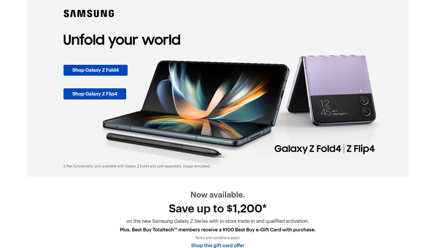 If you’ve got your eye on the new Samsung Galaxy Z Fold 4 or the Galaxy Z Flip 4 and you have a device to trade, then Best Buy might just be your best bet. The launch deal on the new Galaxy Z series can save you as much as $1,200 on your phone purchase.