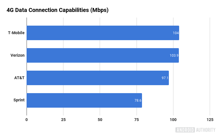 To backup this theory, OpenSignal has, for the first time, begun collecting data to gauge a network’s full data connection capabilities under optimal conditions. According to the results, both T-Mobile and Verizon are tied for peak capacity at 104 Mbps. This suggests that T-Mobile’s network is better at utilizing its maximum network capacity, ensuring that consumers stick closer to their peak maximum speeds more of the time. Verizon, on the other hand, is struggling to ensure the very fastest speeds now that users are able to consume more data. This is almost certainly hindered by the fact that Big Red has twice the number of subscribers as T-Mobile too.
