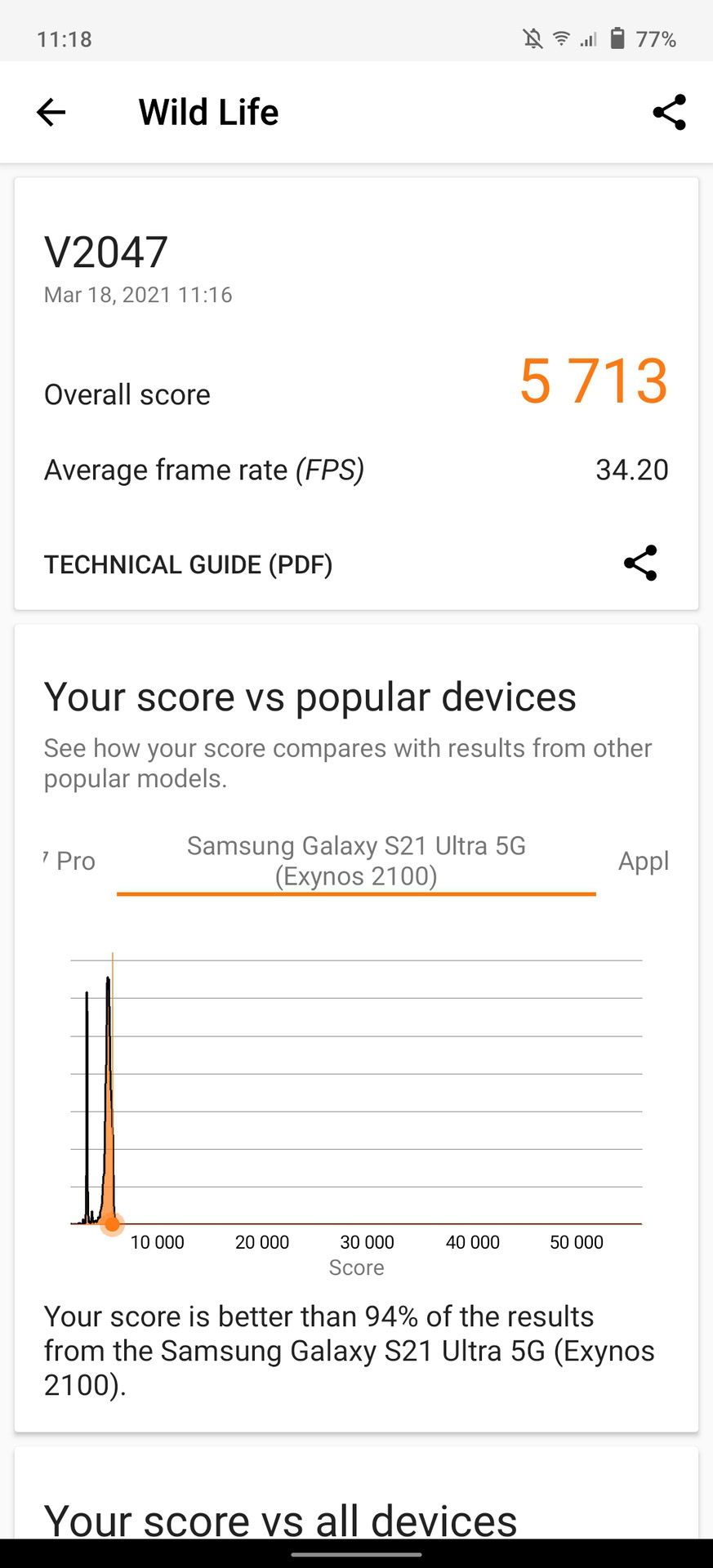 Third-party benchmarks all show pretty great scores in line with other Snapdragon 888 flagships like the Mi 11, Galaxy S21 series, and the OnePlus 9 and 9 Pro. The X60 Pro Plus completed our Speed Test G benchmark in a respectable 80 seconds, with its CPU and GPU performance being faster than the S21 Ultra. But it’s let down a little in mixed CPU/GPU performance, which sees Samsung’s phone streak ahead. Nevertheless, this time puts it just behind the S21 Ultra (78.9 seconds) and ahead of the Find X3 Pro with its default power mode (90 seconds).