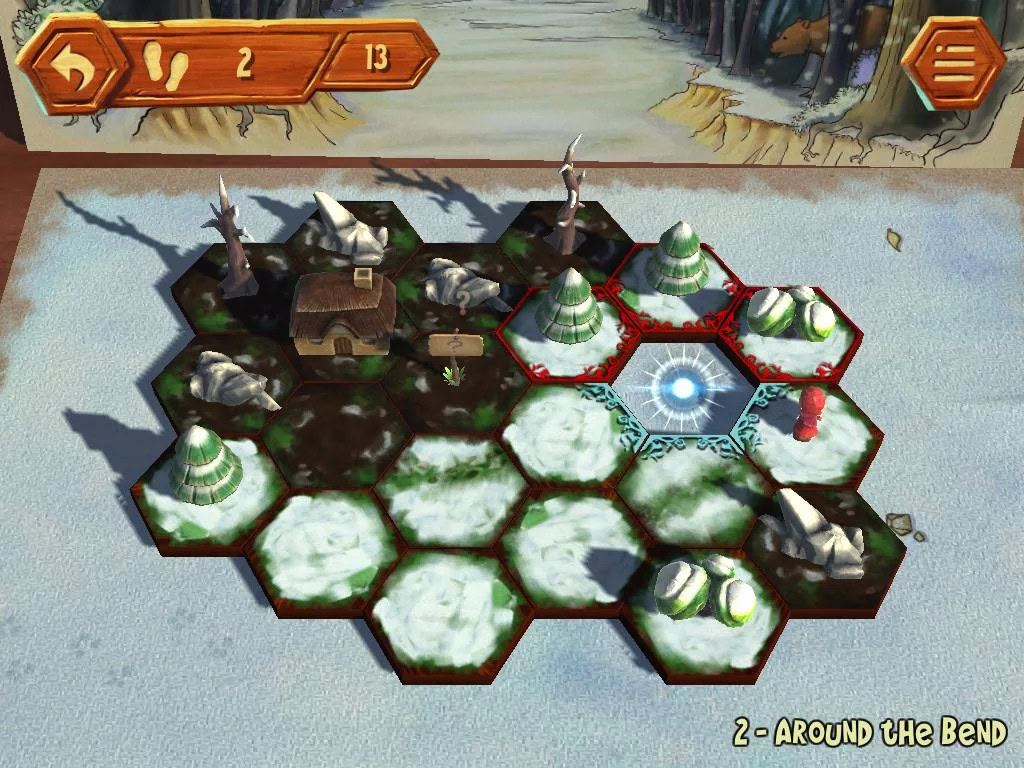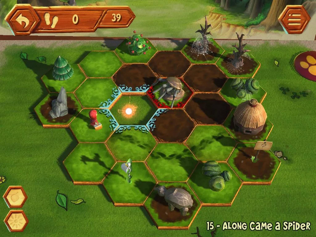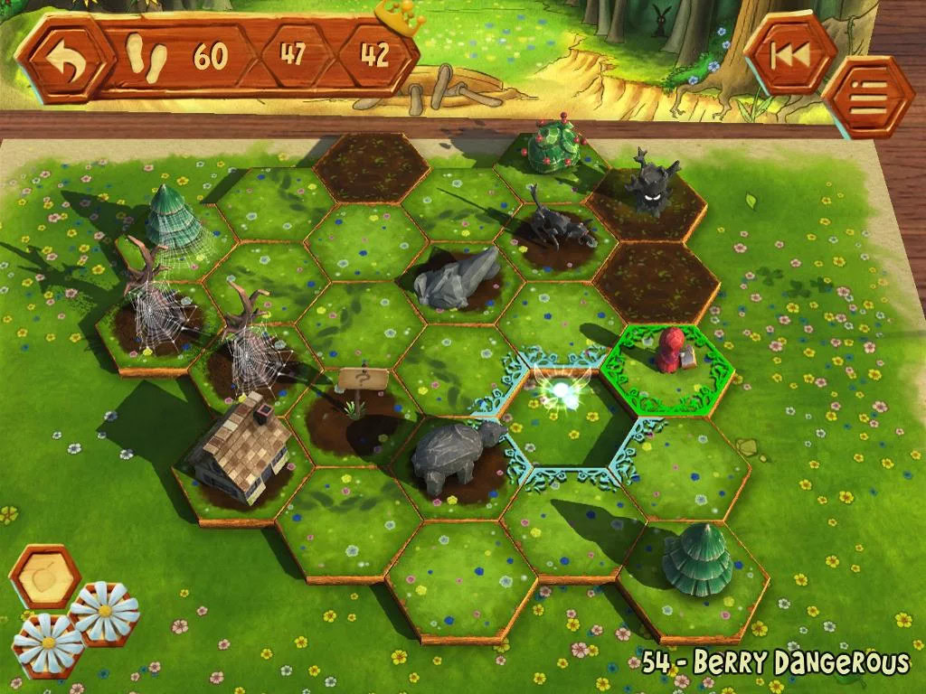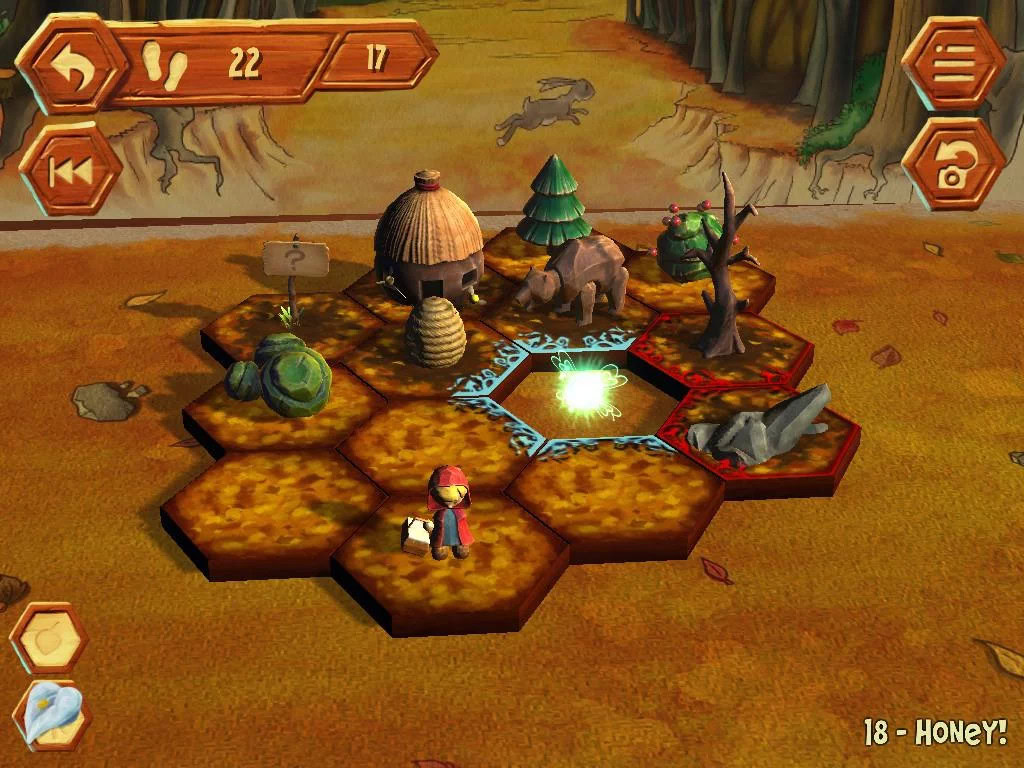 The aim of the game is to slide around hexagonal blocks to navigate Red Riding Hood from one side of the forest-themed game board to the other. You’ll need to avoid obstacles and villains such as the Big Bad Wolf, bears, spiders and other various traps while collecting berries and flowers throughout your journey.