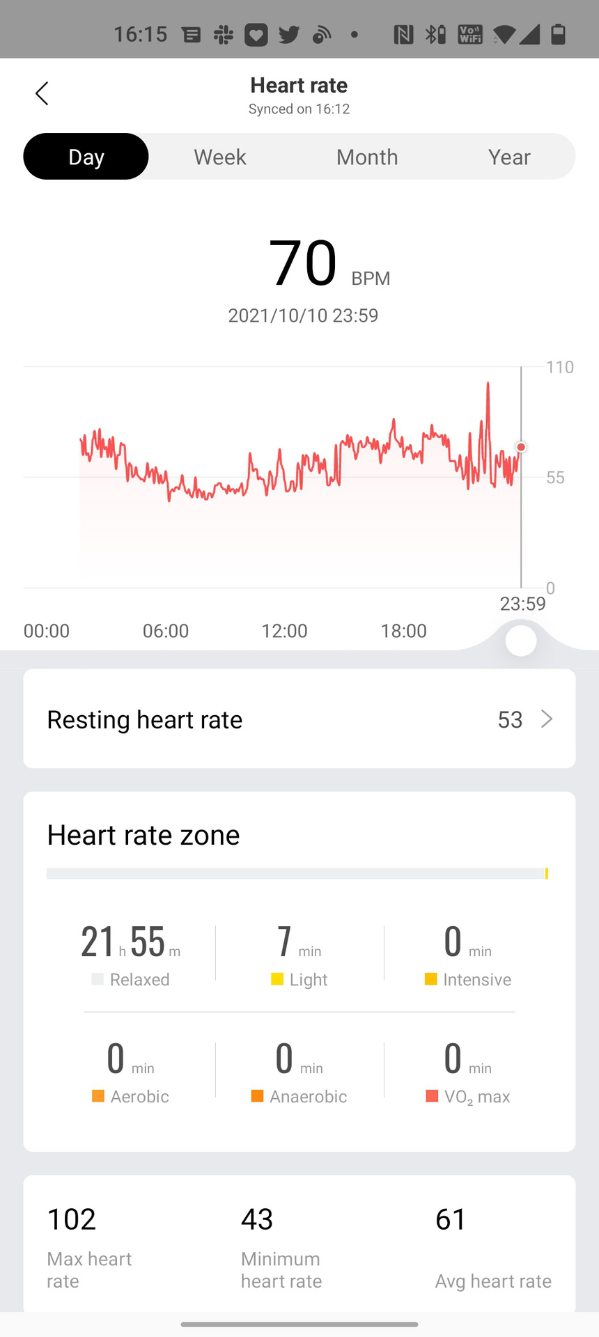 I found Amazfit’s measurements to be a bit generous compared to a dedicated oximeter. While my blood oxygen saturation levels average at about 96% when measured with a pulse oximeter, the Amazfit GTR 3 Pro usually hovered at 98%. The watch presents the automatic measurements with a graph that can be split by days, weeks, months, or even years but doesn’t offer much information about what it means for the end-user.