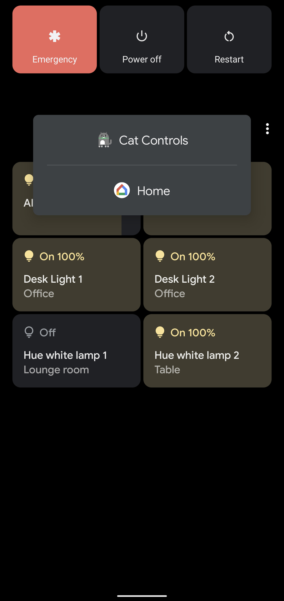 Don’t worry: you can still access your smart home controls in the power menu. Just select the Cat Controls option right below the Google Pay card, then select Home.