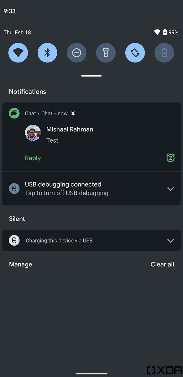 Finally, the notification drawer looks very different. The quick settings tiles have a lot more space surrounding them since they are now in a 3×3 grid. The background is far more opaque than the one we saw in the DP1 Android 12 UI (for which we are thankful). The brightness bar takes up a lot more real estate and notification cards look slightly different.