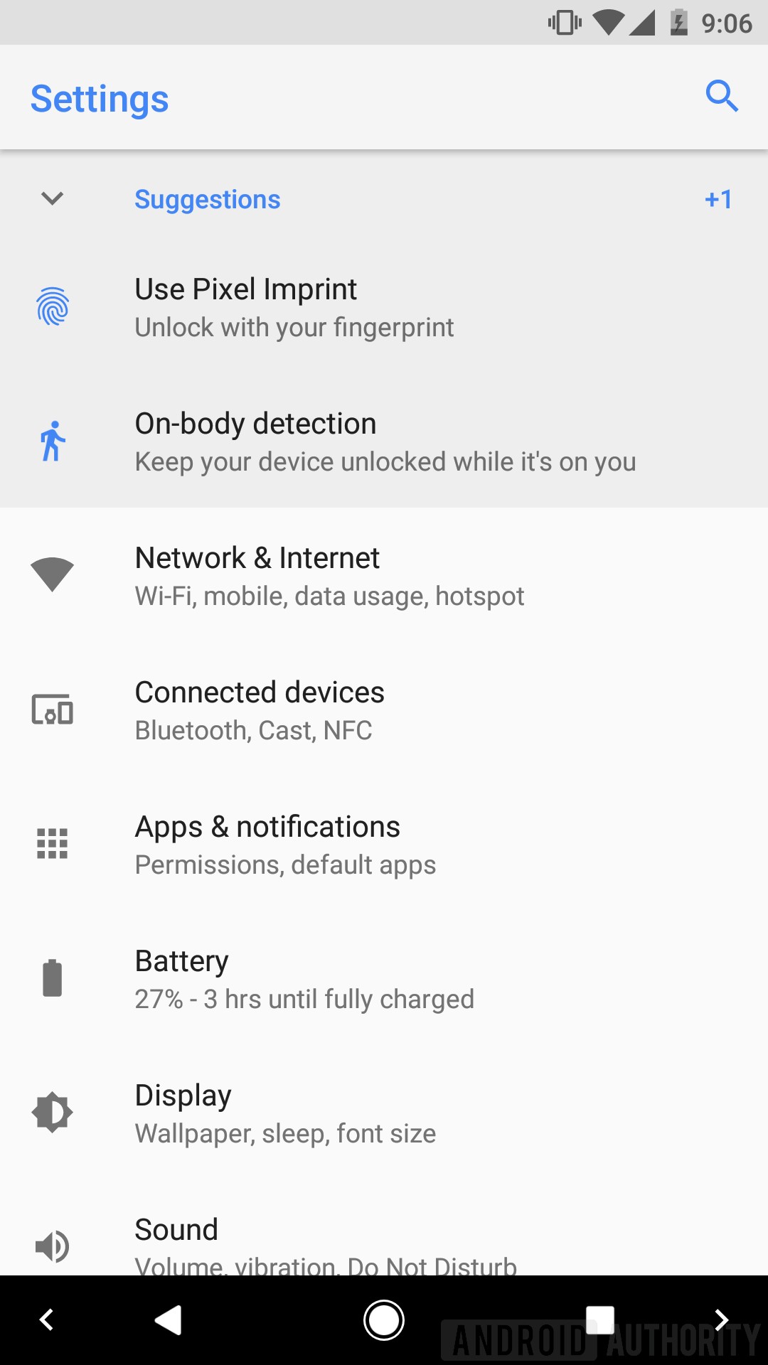 The Settings menu in Oreo has been greatly reduced in size, with a lot more nesting of options under larger categories.