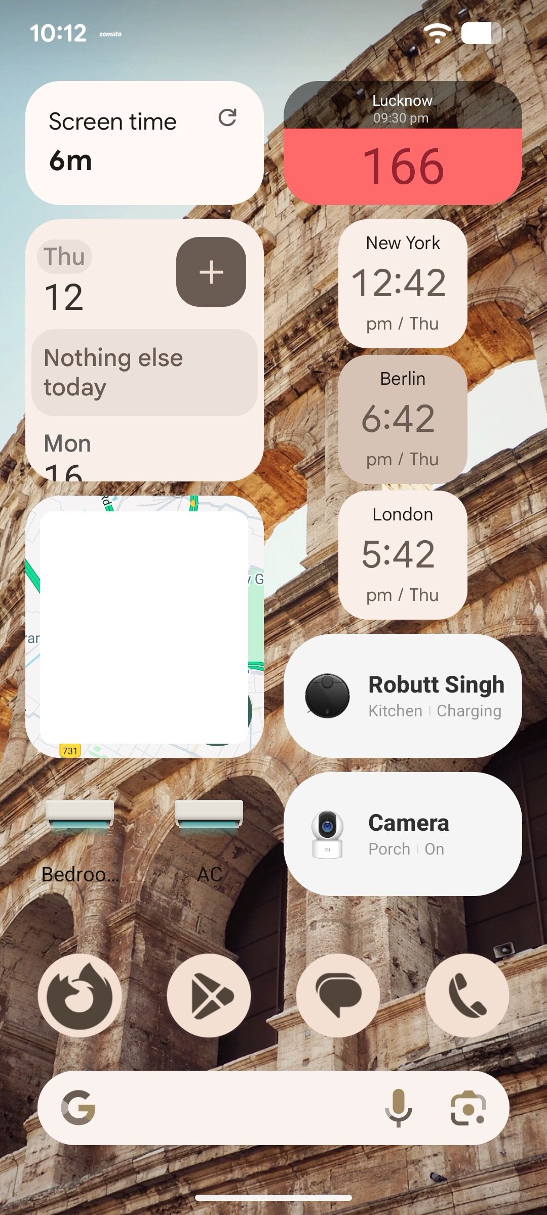 On my Pixel, each widget occupies a permanent spot, whether I need it at the moment or not. And the inconsistency is just jarring, with different shapes, sizes, and corner radii that turn the whole screen into visual clutter. My LG AC widget awkwardly sits in a 1×1 slot while another smart home control eats up a 2×2 grid — both doing the same thing. It’s insufferably chaotic, at least to my nit-picking eyes.