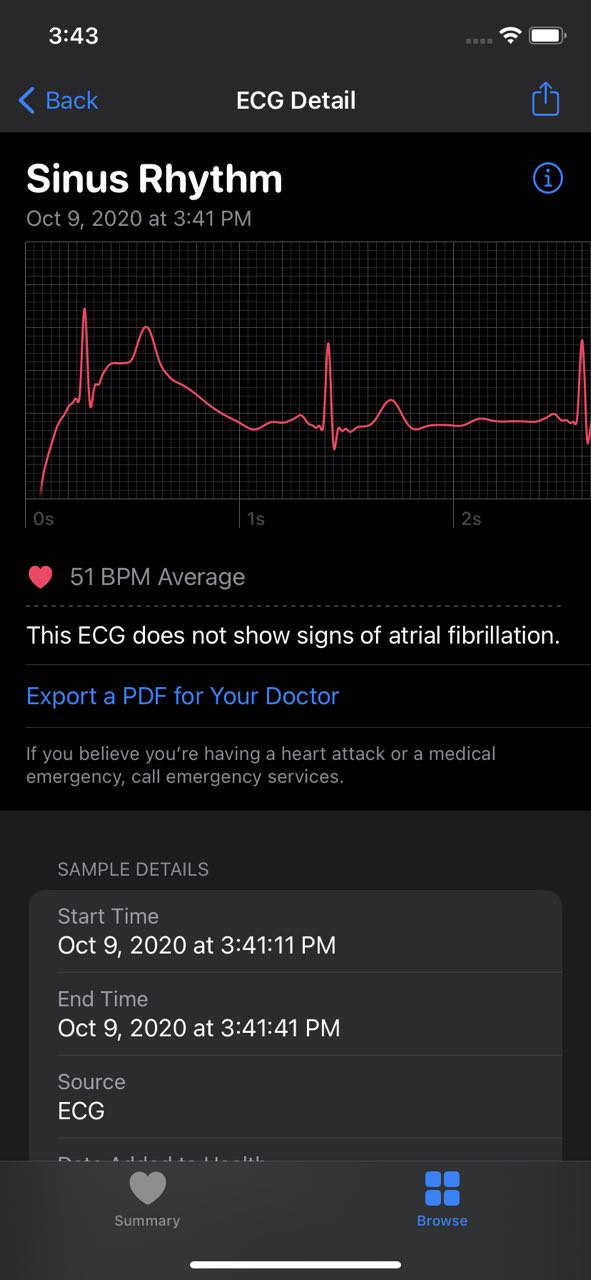 The Series 6 also has a medically validated ECG monitor on board, just like the Withings ScanWatch and Fitbit Sense. Taking an ECG reading is quick and easy. I never ran into any issues where it couldn’t take a reading (that happens frequently on the ScanWatch and Sense). ECG results are easily accessible in the Health app on your iPhone and can be shared with a doctor in just a few taps. The ScanWatch also makes sharing these results easy. The Fitbit Sense, well, not so much.