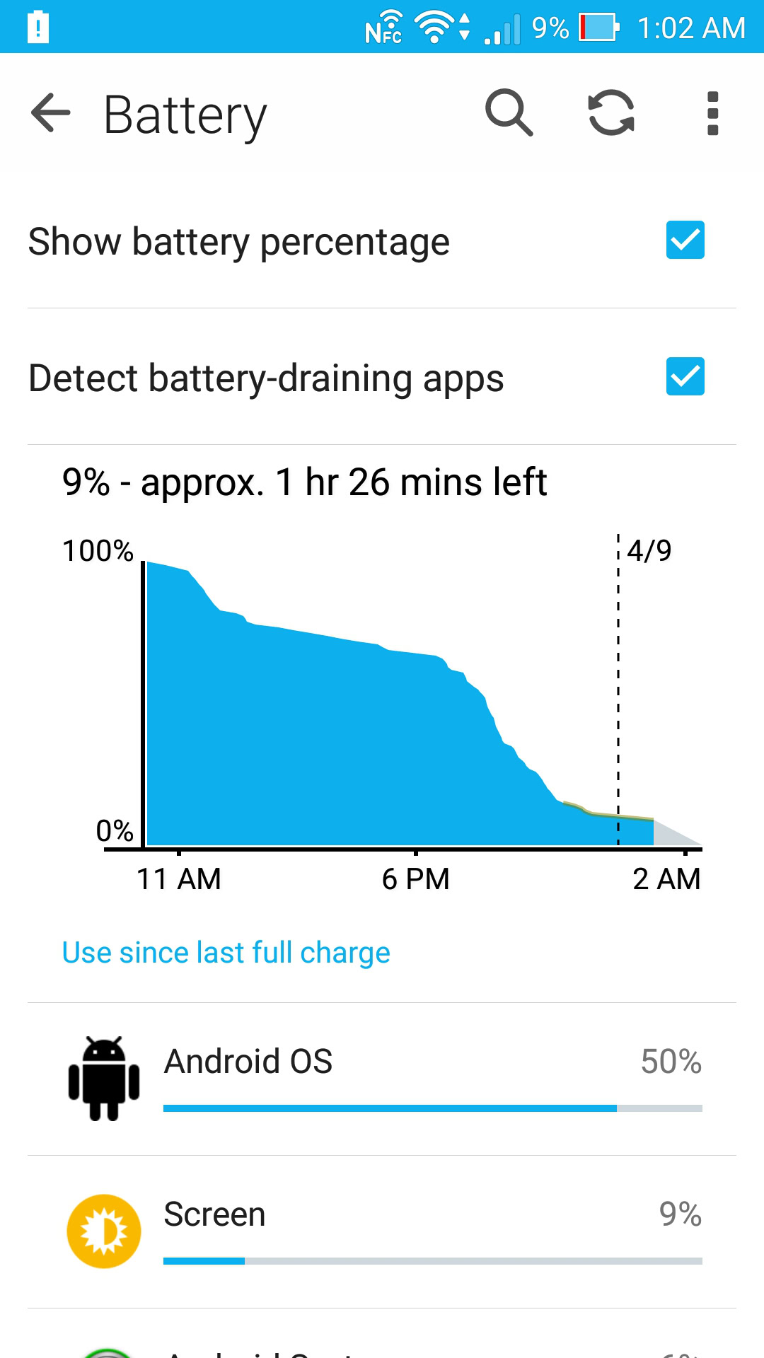 The Zenfone 2 comes with a non-removable 3,000 mAh battery, that, coupled with the power frugal Intel Atom chip, should allow for some great battery life, but that unfortunately has not been the case. As you can see from the screenshots below, while it is possible to get a full day of use out of the device with around 4 hours of screen-on time, there are significant battery drain issues from the Android OS that is drastically shortening the battery life. It’s difficult to pinpoint whether the cause is in the initial version of Android 5.0 Lollipop, which has been known to be buggy, with a lot of issues being resolved with the jump to Android 5.0.2 and now Android 5.1, or whether the problem is with the Zen UI itself.