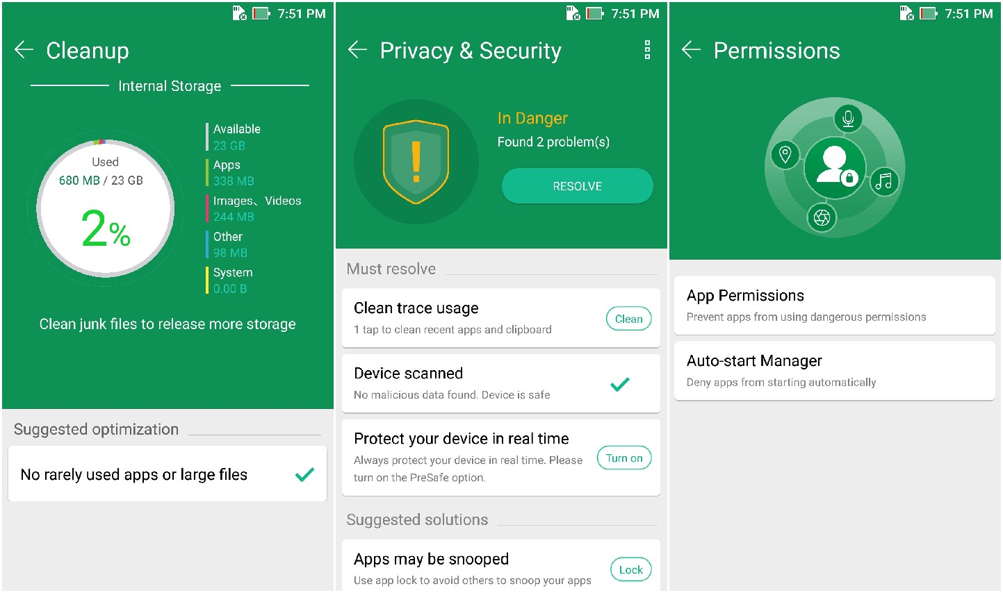 Of course, the most useful app from the entire ZenUI suite is the Mobile Manager. With slick animations and intuitive UI, the app offers quick ways to free RAM and storage space, and manage apps as well as app permissions. It’s a sort of one-stop destination for managing your phone’s performance.