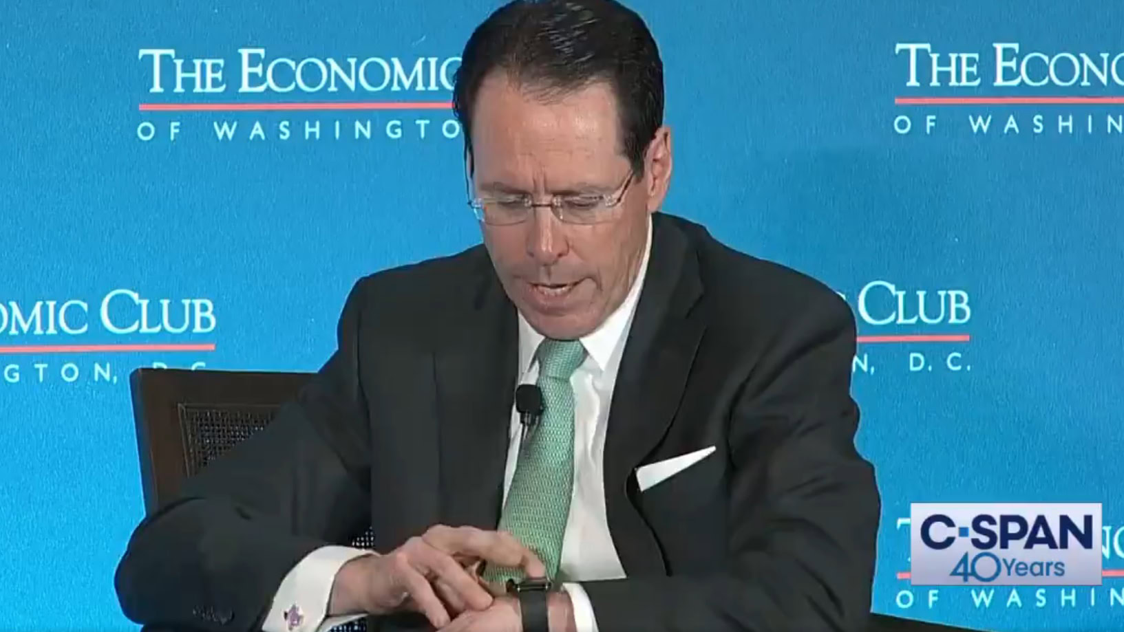 AT&T CEO Randall Stephenson gets a robocall while onstage at @TheEconomicClub. pic.twitter.com/i5llHj6hz2— CSPAN (@cspan) March 20, 2019