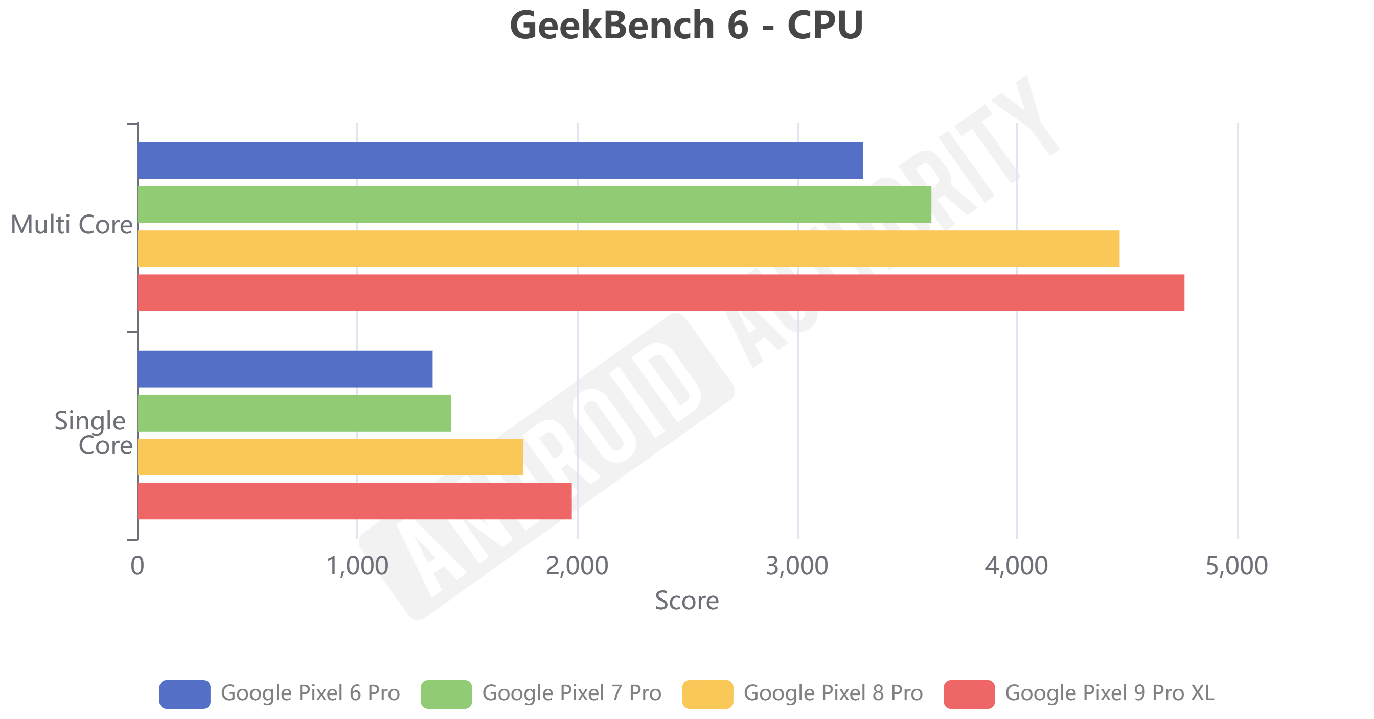 What we see here is that multi-core benchmarks perform better year-over-year, but single-core benchmarks don’t always have the same gains. But without a frame of reference for what these gains mean, discussing how much faster a product is has become an accurate but mostly useless statement. It’s like saying the Pixel 9 Pro XL’s display is larger than the Pixel 8 Pro’s — it’s a true statement, but we’re talking a literal tenth of an inch. Is that really going to make a difference in your life?