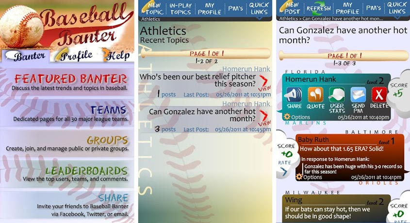 Now that you’re up to date with the latest sports news, it’s time to share it with your friends. It can get lonely if you’re the only person who’s into sports, but Baseball Banter has you covered. Talk about baseball with other baseball fans and share your thoughts, opinions and ideas on the latest in baseball news. Designed to operate like an online forum, Baseball Banter has a dedicated team page for each MLB team. You can also use the Featured Banter page to view baseball topics that are currently trending.