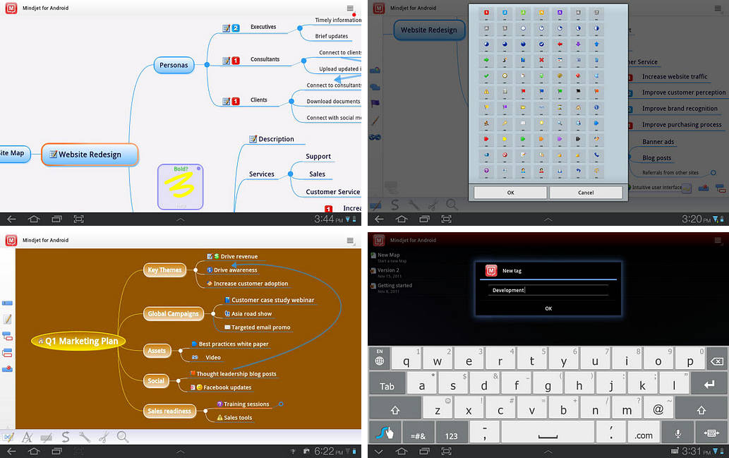 It only takes inspiration to craft an interesting idea and nothing beats organizing your ideas with Mindjet for Android. Once you have started on an interesting idea, organize and branch it out by adding more details.