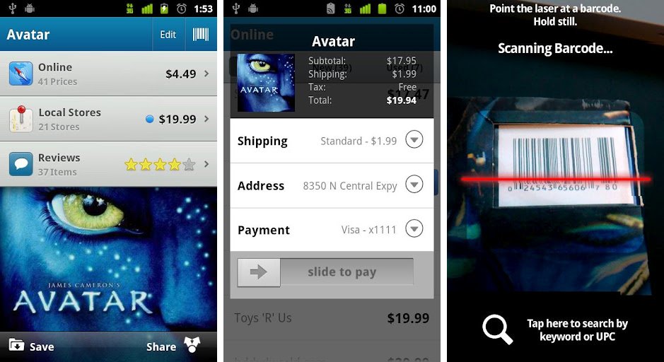 ShopSavvy is a cross platform application for Android, iPhone, and Windows Phone devices that provides prices from online and local retailers for a product after you’ve scanned its barcode. All you have to do is to aim the camera at the barcode of a product and hold still until you hear the beep. Once a product is scanned, you will be provided with price information and the option to buy the product via retailers such as Target, Walmart, Buy.com, and Barnes & Noble. You will require adding your credit card information before being able to place purchase orders with ShopSavvy.