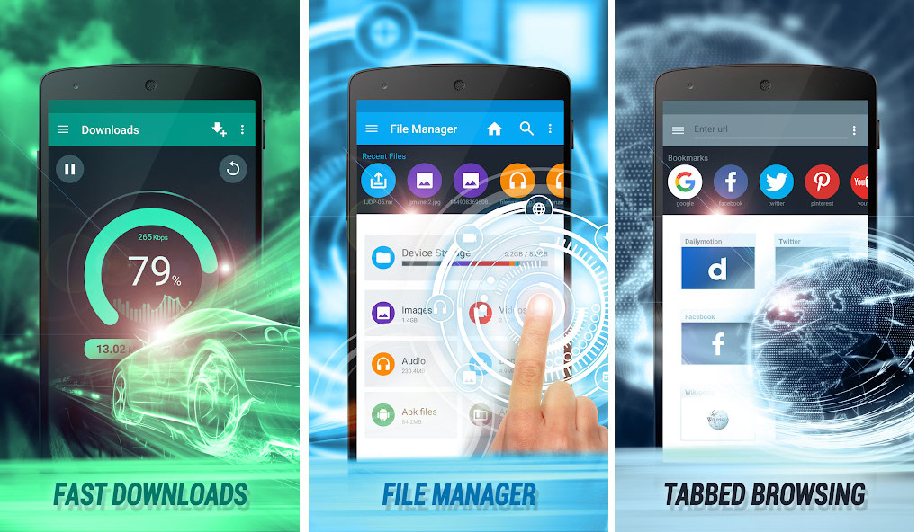 Download Manager for Android helps you boost the speed of your downloads. With the help of this app, you can download videos, files, and software of any kind. It supports various filetypes like APK, RAR, ZIP, MP3, MP4, DOC, XLS, and many others. In addition to this, it even allows you to download stuff from social media apps like Facebook. There’s also a built-in browser, file manager, and media player. While the browser is a bit slow, we appreciate the file manager and media player.