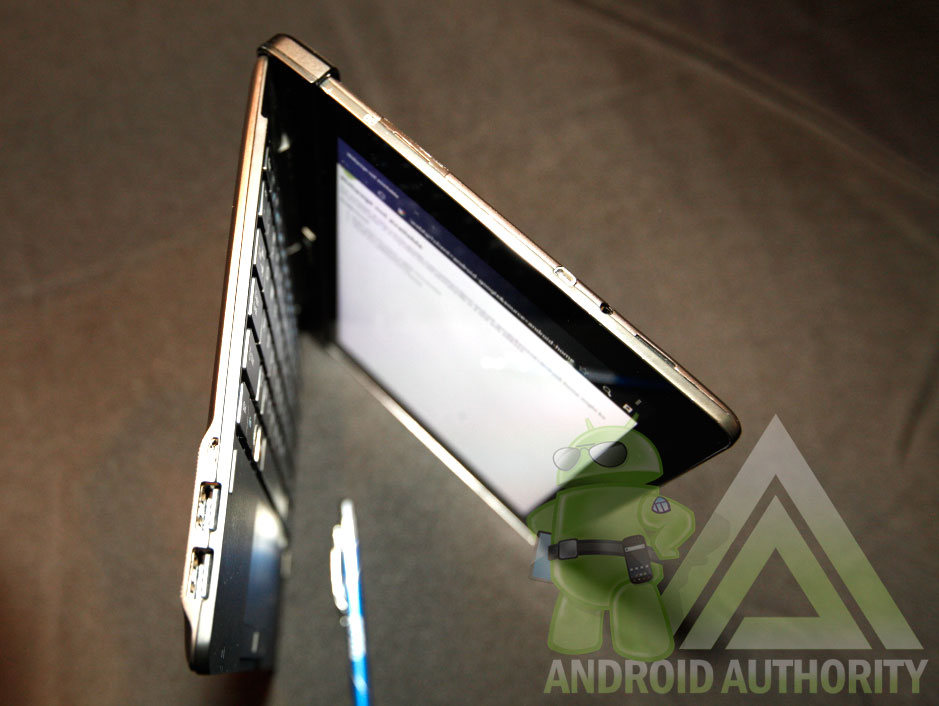 Also, while you can usually hold Android tablets in a few different ways, the Tab Plus has a pretty clear top and bottom. We tried to hold it upside down, using the narrower top half as our grip, but pretty quickly realized that it’s much more comfortable to hang onto the thicker part. You don’t wind up feeling like you’re holding a razor-thin slate so much as a comfortably reassuring tablet, almost like it has a built-in case.