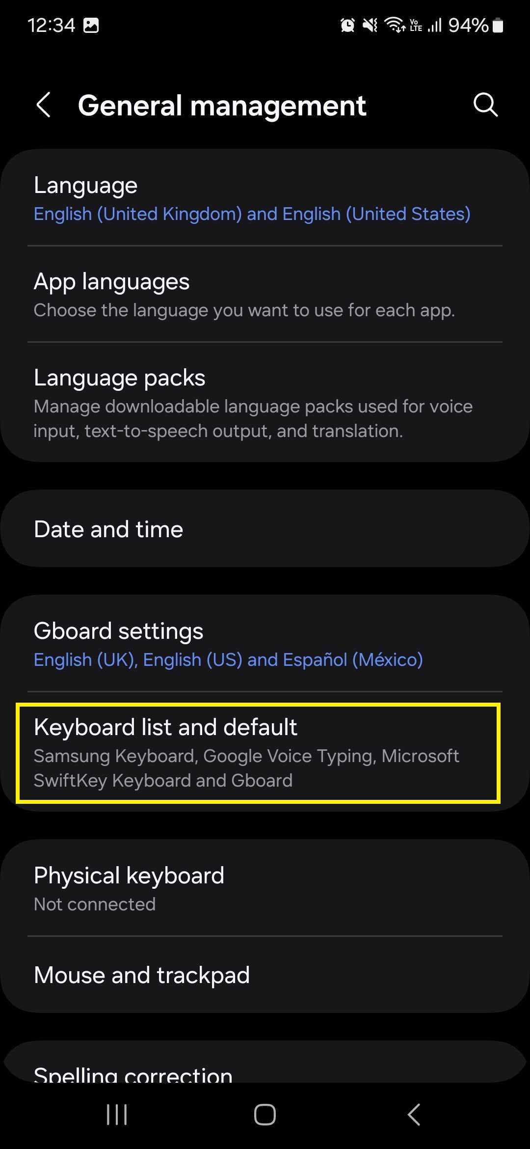 2. Next, you need to set Gboard as your default keyboard. On the Samsung Galaxy S24 Plus, the steps are Settings > General management > Keyboard list and default.