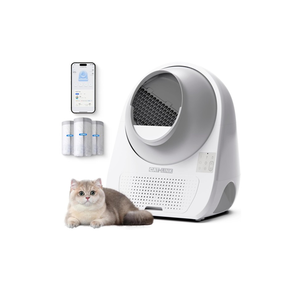 The CATLINK Pro-X is a smart litter box designed to take the hassle out of cat care. It automatically cleans after each use, neutralizes odors, and even tracks your cat’s health through built-in sensors. With its spacious 65-liter design, it’s suitable for larger cats and multi-cat households, giving you a cleaner home and fewer chores.