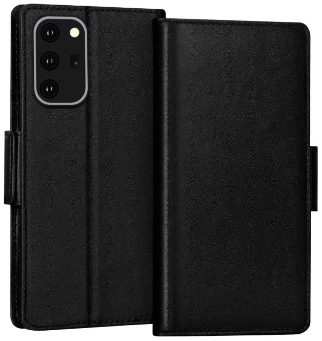 The Galaxy Note 20 isn’t exactly a pocket-friendly case, so why not look for an option that frees up some of your other pocket space? The FYY wallet case does exactly that with three card slots and a large cash pocket for storage. It’s made of genuine leather with a TPU bumper to lock your phone in place, and it feels as good as it looks. The folding cover doubles as a kickstand to make hands-free streaming more comfortable.