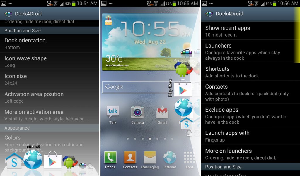 Most Android launchers, if not all, have dock bars where you can easily access an app anywhere on your homescreen. You can also customize and change the apps sitting on the dock bar to suit your needs. The Dock4Droid app also follows this concept by displaying a virtual dock bar for your recently used apps. Aside from displaying the previously used apps, you can also place your apps on the virtual dock bar for quicker access.