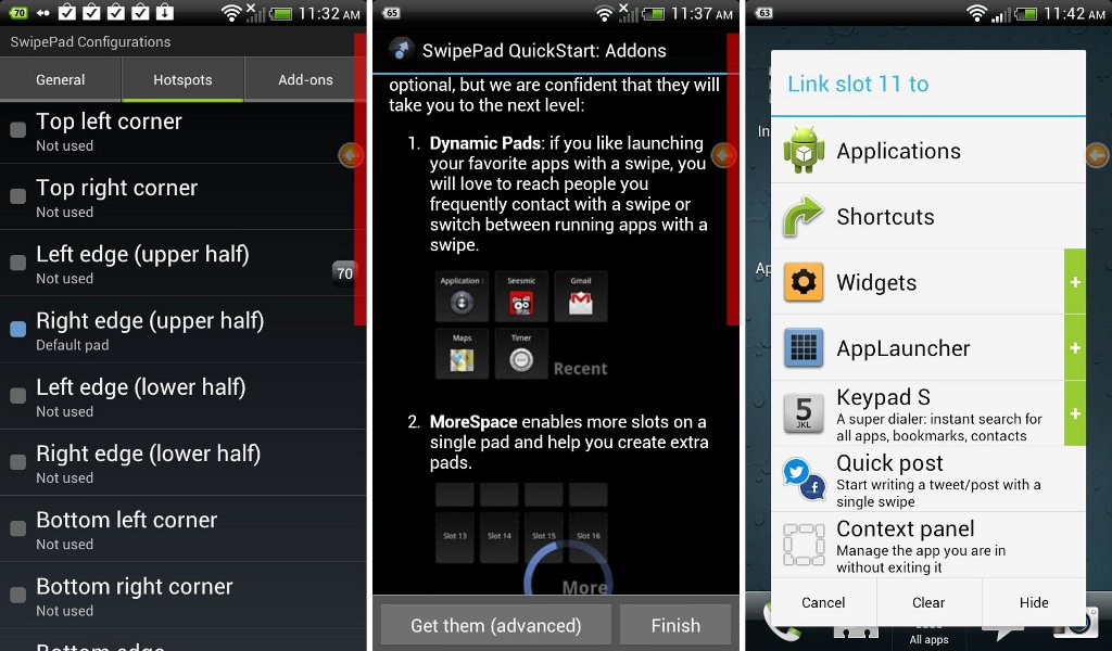 SwipePad has other hotspots you can utilize. Pick any one of them and assign functions to access your Recently contacted, Frequently contacted, and Recent tasks lists. If you want more functions, you’ll need to purchase the MoreSpace: SwipePad add-on from the Google Play Store.