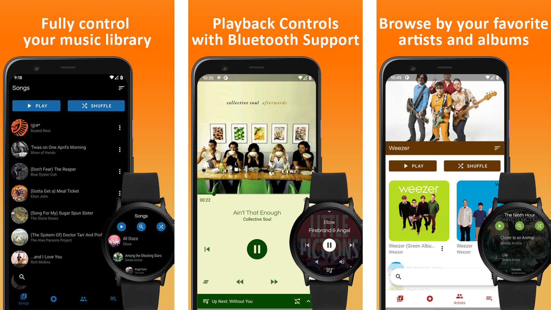- NavMusic is an excellent offline music playback app for Wear OS that lets you upload your music to your watch and listen to it through Bluetooth headphones.