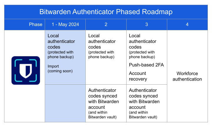 Bitwarden has also released a roadmap for what’s next. The ability to import is expected to come this month, though it is unclear from which apps.