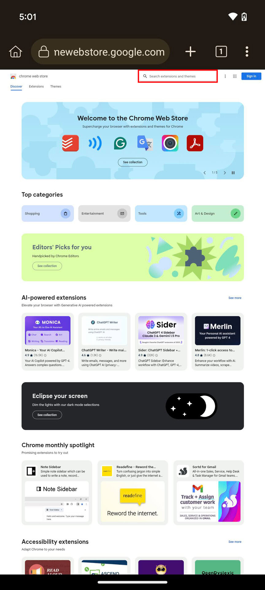 Kiwi Browser used to be a great alternative that supported Chrome Extensions, but that browser has been discontinued. Now, we believe the easiest solution is to switch to Firefox and use an add-on. It’s a great browser, and many users love it more than Chrome, itself. Give it a try!