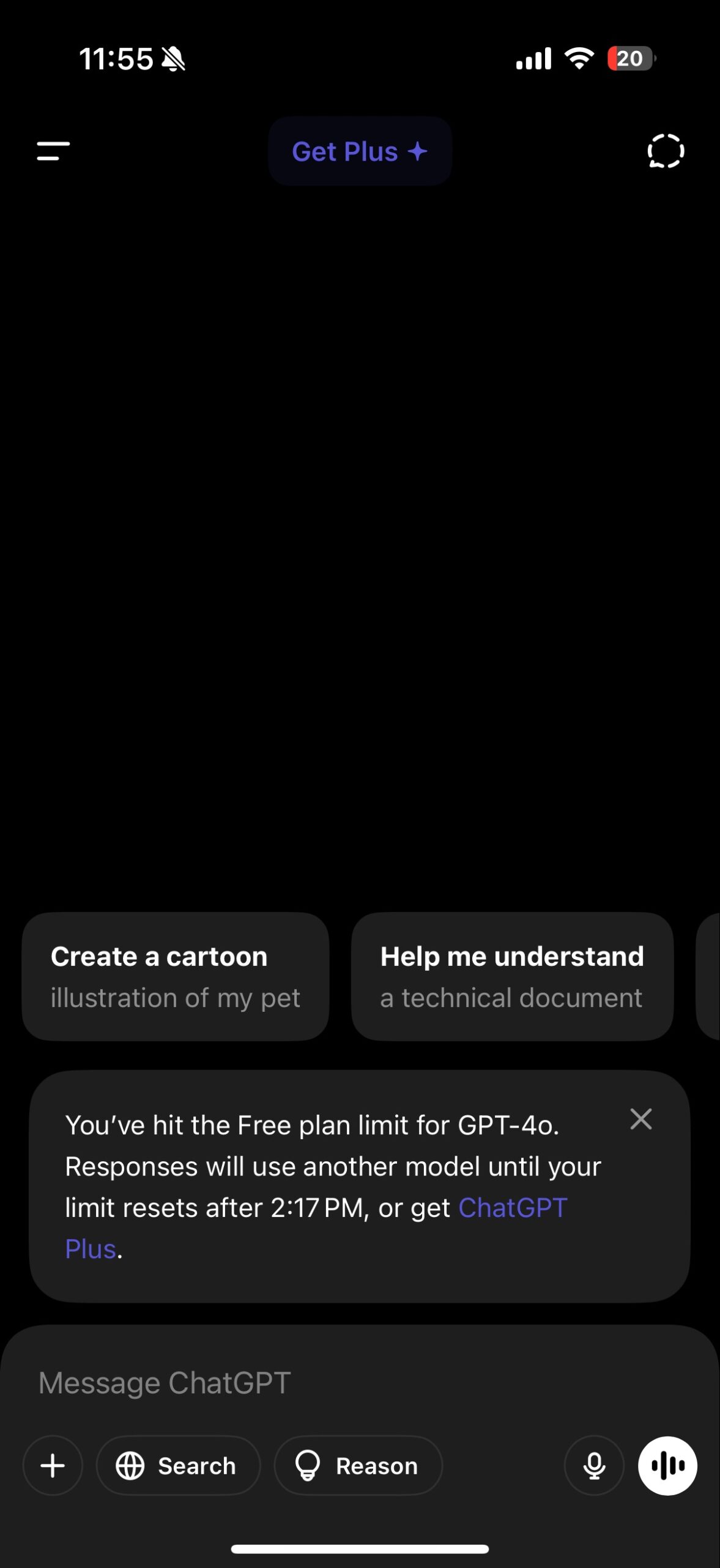 “You need GPT-4o to continue this chat because there’s an attachment. Your limit resets after 2:20 PM.”