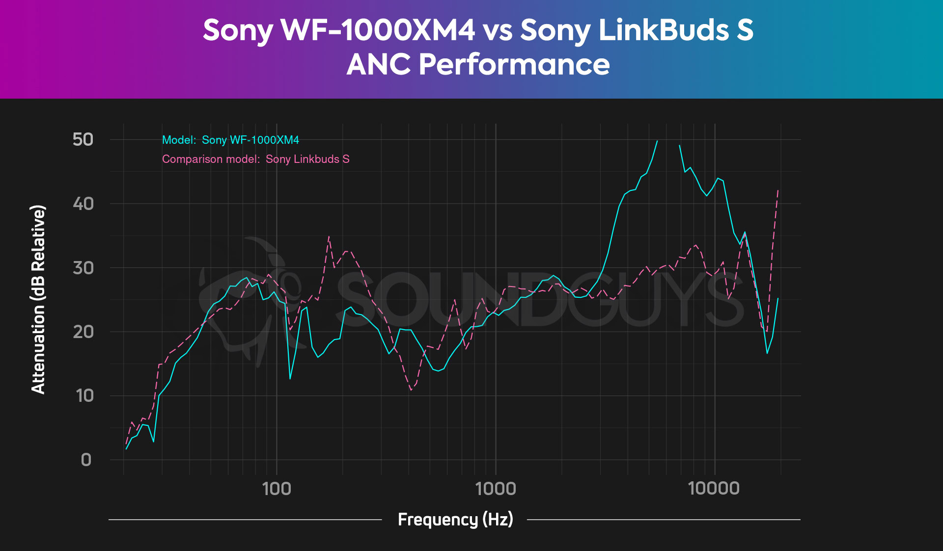 Mid-tier noise-cancelling performance is all over the place. ANC on the Beats Studio Buds and Nothing Ear 1 does little to cancel out background noise. Then there are the Samsung Galaxy Buds 2 and Sony LinkBuds S that dampen background noise quite a bit. Sony’s own LinkBuds S actually has better ANC than the flagship WF-1000XM4 from 75-350Hz, so wind, engine rumbles, and A/C whirs will all sound a smidge quieter with the LinkBuds S than with the XM4. No matter what, though, the WF-1000XM4 block out more high frequencies like chatter, keyboard sounds, and clinking dishware.