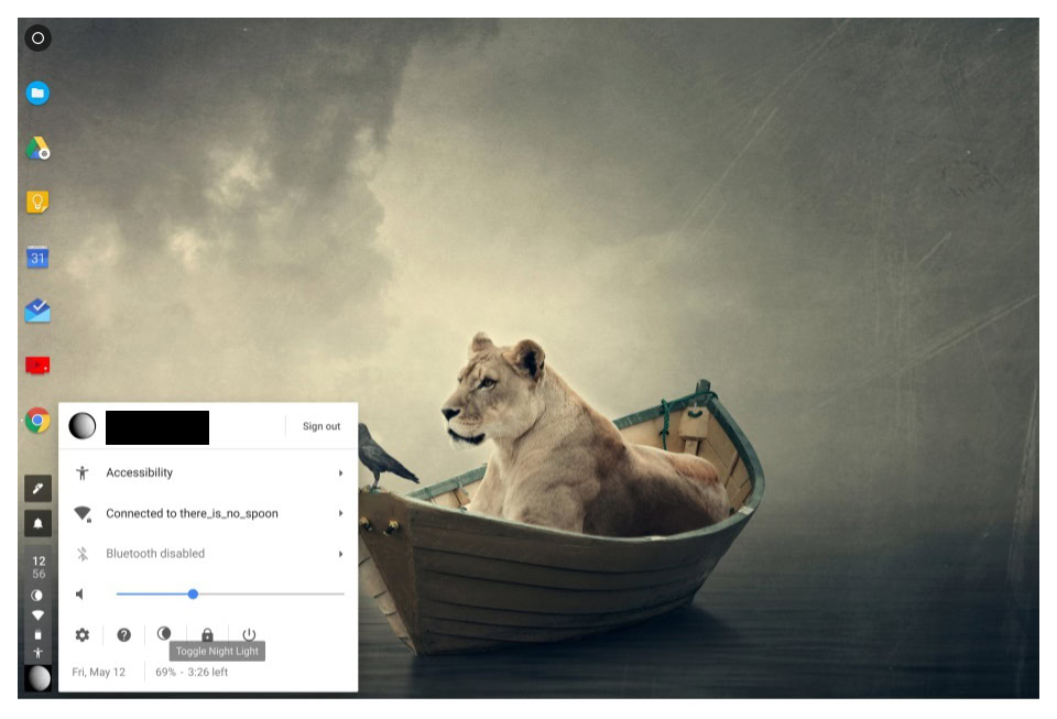 According to a post on Reddit, a night mode (called Night Light) has been spotted in a Canary build of Chrome OS. This mode appears to be accessible via a toolbar toggle and it looks like it will just be an on/off switch rather than a customizable filter (which is somewhat disappointing).