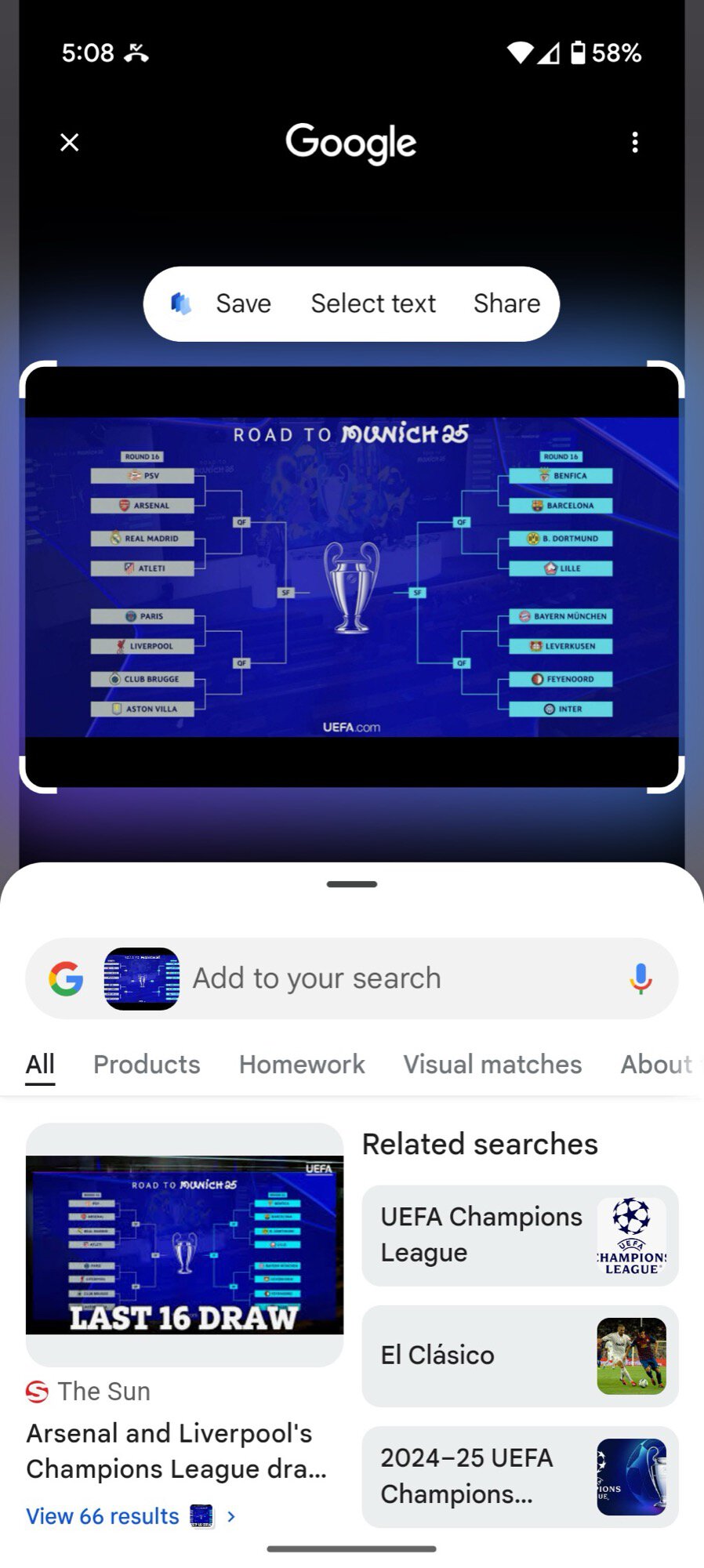 While Google Lens development had stalled for a long while, Circle to Search improvements have been all the rage at Casa Google. The feature has received a lot of love in the last year through Pixel Drops and other updates. From the music search mentioned above to AI Overviews, a new Share button to send my friends that lopsided Champion League draw, Pixel Screenshots integration to save the cover of a book I want to read, and shortcuts to see my search history or delete the last 15 minutes, there are many new capabilities for me to dig into. It’s even integrated Google Lens’ one-tap shortcuts for phone numbers, websites, maps, and calendar events, which are absolute time savers.