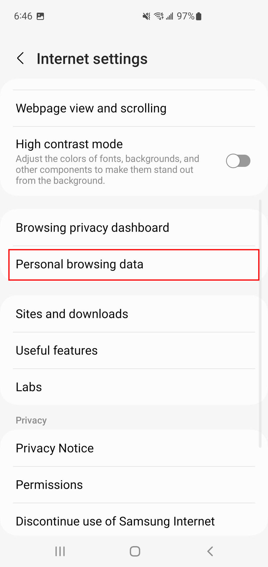 Clearing the app cache and data is one thing, but now you have to start cleaning up other areas of your Samsung device. Let’s move on to the Samsung Internet app, which you’re likely using to browse the web. You can take care of the history, cookies, and cache simultaneously.