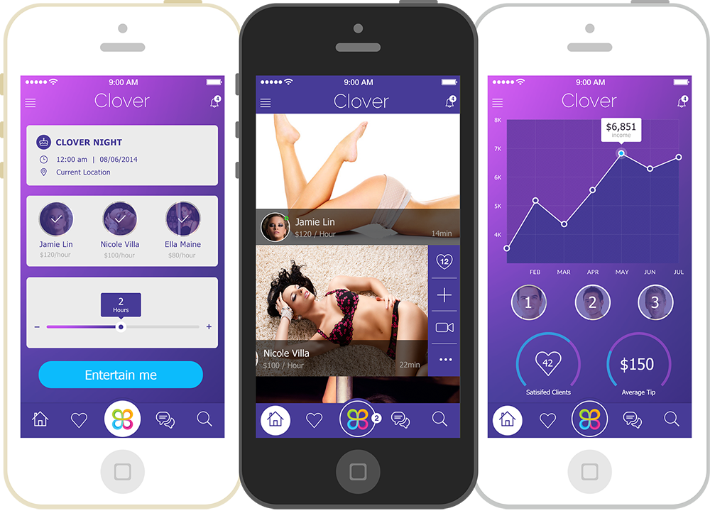 If all those nifty features weren’t sufficient, Clover also adds a layer of security this industry has never seen before. The client or entertainer can hold the Clover button at any time, an action that will trigger an alert and send your location to local authorities.