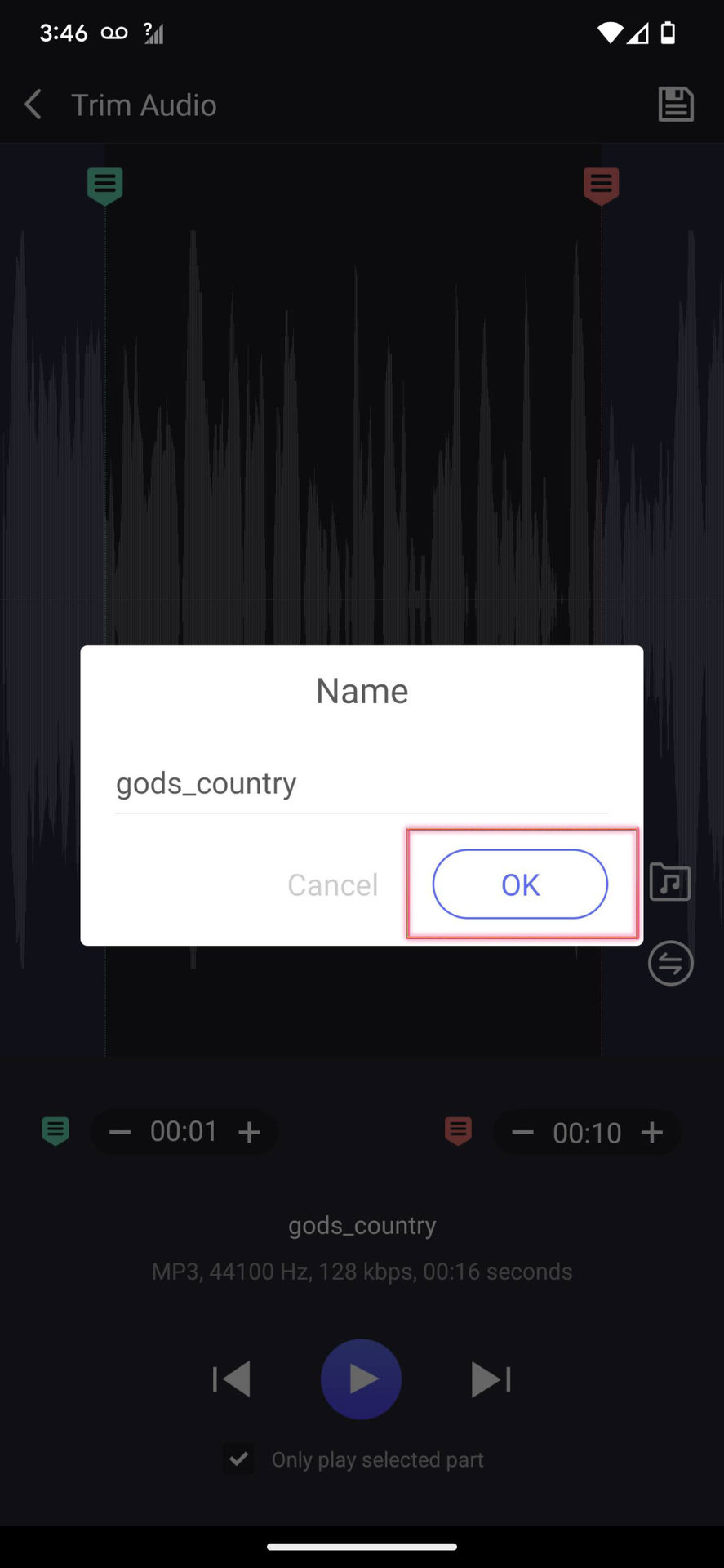 - Use the left and right sliders to select the area you want to keep as your phone ringtone.