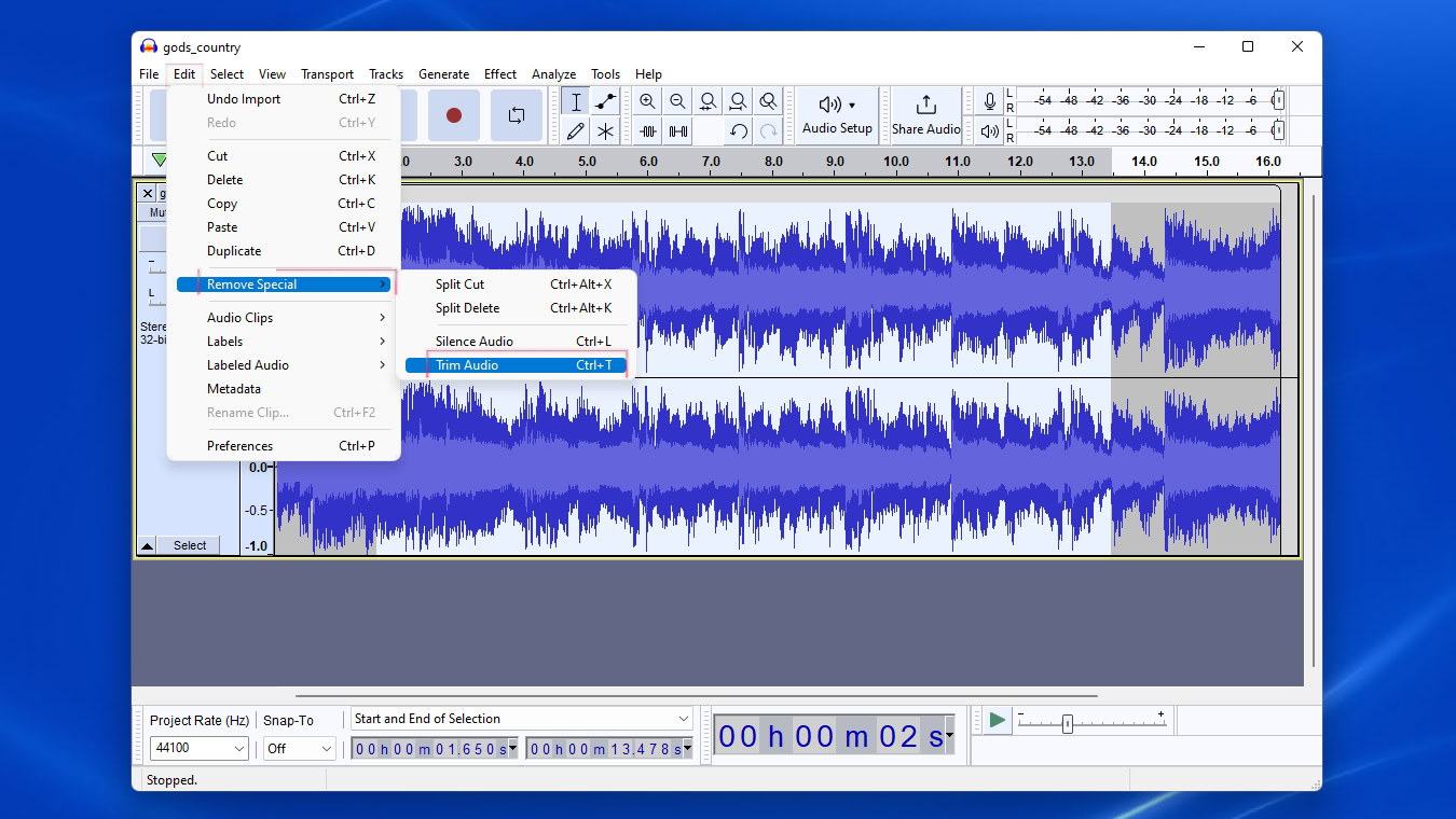 How to trim ringtone music using Audacity (macOS, Windows, Linux):