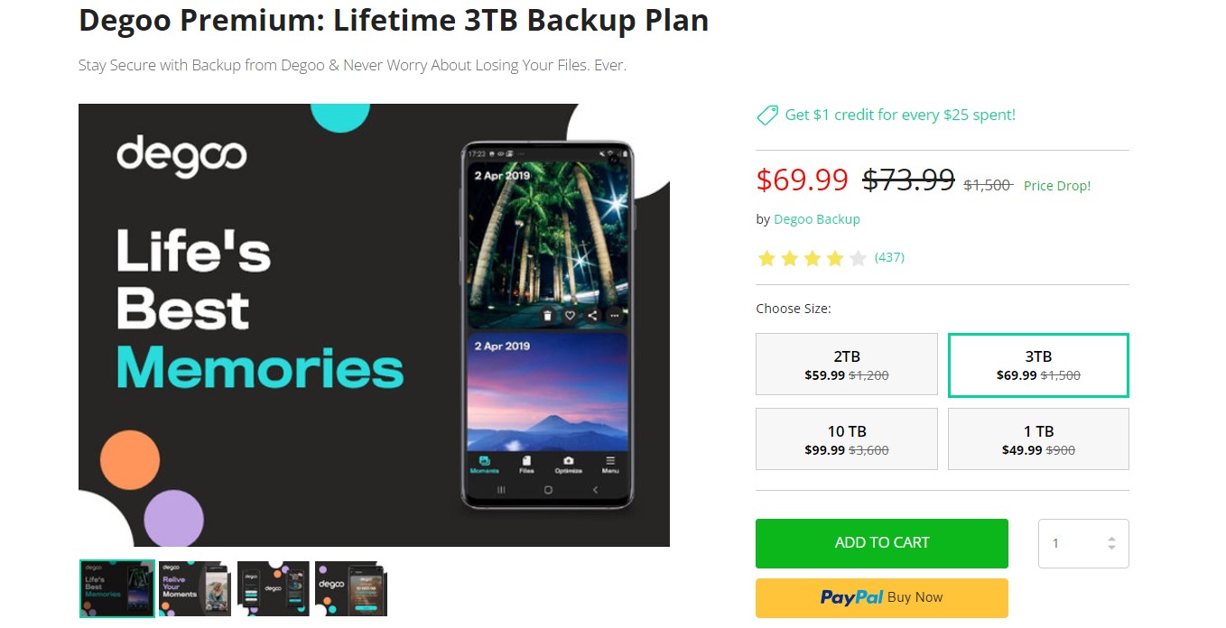 If you need more cloud storage than your free allocations provide, Degoo Premium is an affordable solution. Instead of monthly subscriptions, you can make a one-time payment for a lifetime plan. Tech Deals has four Degoo deals available right now, with the 3TB plan on offer for just $69.99 (95% off).